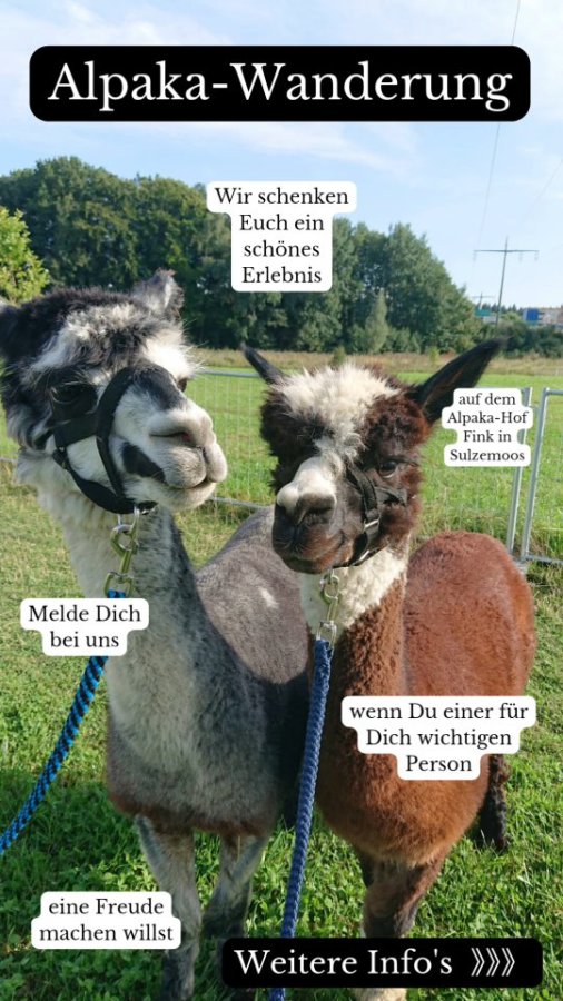 Darum erzähl Du uns, wen und warum wir mit zur Alpakawanderung auf den Hof von Kerstin Fink nehmen sollen.